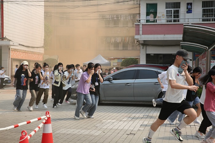 为进一步加强学校安全应急工作,增强学校师生消防安全意识,提高师生对火灾等突发事件的应对处置能力,3月31日下午,学院同时在邕武校区和长堽校区组织全体在校师生进行消防安全演练。