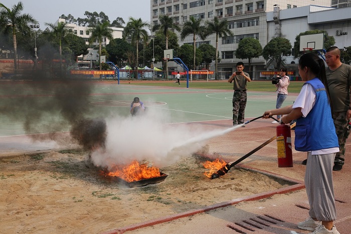 学院学生进行安全消防器械实战操作