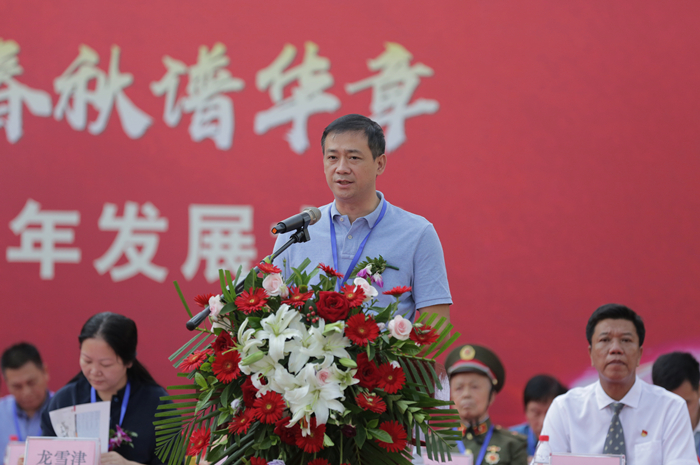 广西钦州市吉祥物流有限公司、广西钦州市万通汽车销售有限公司董事长,钦州市百色商会会长,钦州市道路运输协会监事长,我院96级毕业生、杰出校友李恩情代表我院广大校友发言。他代表全体校友向母校表示最衷心、最热烈的祝贺,向各位老师表示亲切的问候和崇高的敬意。他祝愿母校在60华诞之际,宏图更展,再谱华章,未来更加灿烂辉煌!