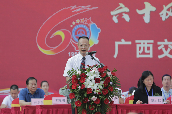 会上,广西壮族自治区交通运输厅科教处处长胡华平代表自治区交通运输厅向学院建校60年来砥砺奋进取得的巨大成就表示热烈的祝贺。他指出,广西交通技师学院是我区交通运输系统培养技能人才的重要基地,有着光荣的办学传统和鲜明的办学特色。他希望广西交通技师学院以建校六十周年为契机,深入贯彻落实习近平新时代中国特色社会主义思想和党的十九大精神,不忘初心、牢记使命,紧紧围绕核心任务,紧密结合国家战略和经济社会发展需要,进一步弘扬优良的办学传统和办学理念,在建设国内一流交通技工院校征程上迈出更加坚实的步伐。