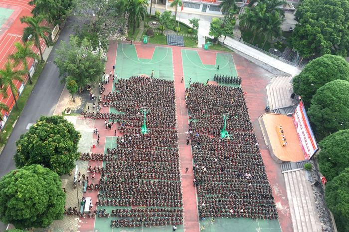 9月6日上午,我院2019级新生军训动员大会在学院灯光球场举行。学院院长钟修仁,院长助理李毅,学生工作科负责人,广西锐善堂训练基地主任、教官以及全体新生参加了动员会。会议由学生工作科科长梁勇主持。