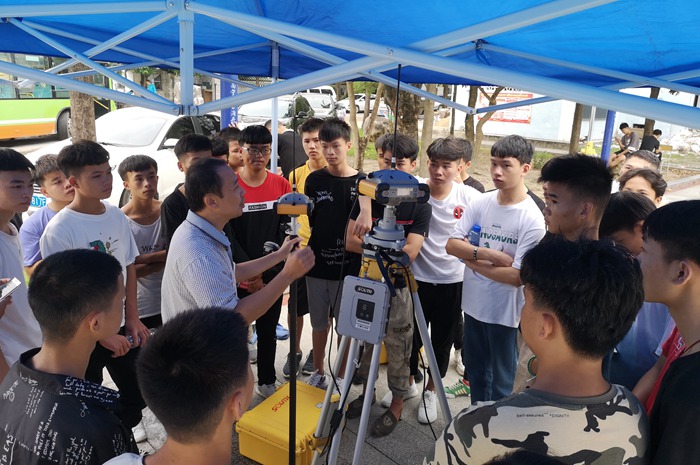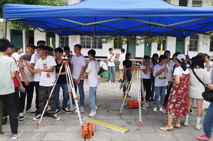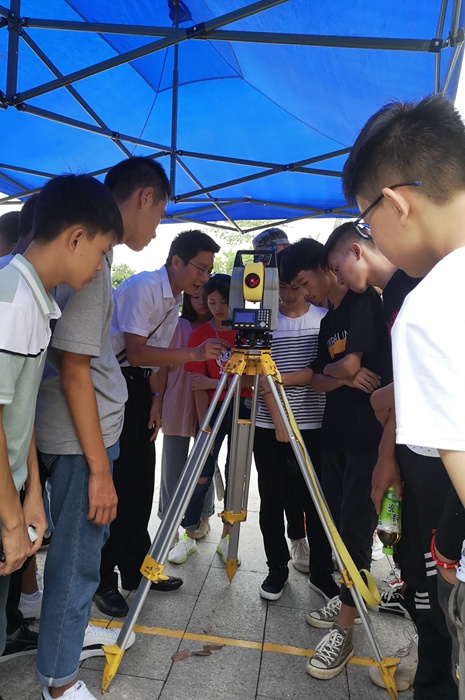 学生参观水准仪测量,并由18级学长进行演示