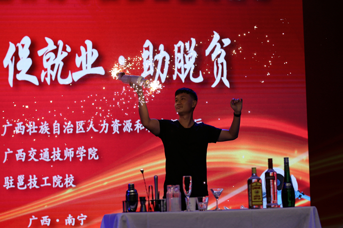 此次宣传活动包括“技能扶贫”签名活动、学生才艺表演、有奖知识问答等,内容丰富多样。现场开设了工业机器人、汽车维修、酒店服务、服装设计、茶艺等各类专业的技能展示以及汽车日常保养、电脑日常维护、南宁传统小吃制作、空调日常清洗、美容美发、动漫制作等现场观众体验项目,并有艺术花篮制作、鸡尾酒调制、机器人操控和陶瓷拉胚等免费技能培训大课堂,市民们纷纷驻足观看并且参与体验,现场人头攒动、热闹非凡。