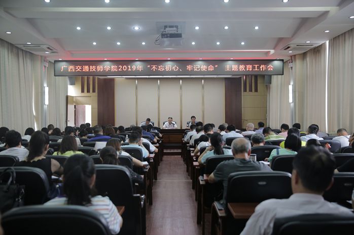 为贯彻落实自治区交通运输厅党组和自治区道路运输管理局党委关于“不忘初心、牢记使命”主题教育工作会议精神,动员全院党员守初心担使命深入践行新思想,6月14日下午,广西交通技师学院召开“不忘初心、牢记使命”主题教育工作会议。学院党委书记古雅明作动员部署讲话,学院院长钟修仁主持会议。学院全体党员、中层领导干部参加了主题教育工作会议。