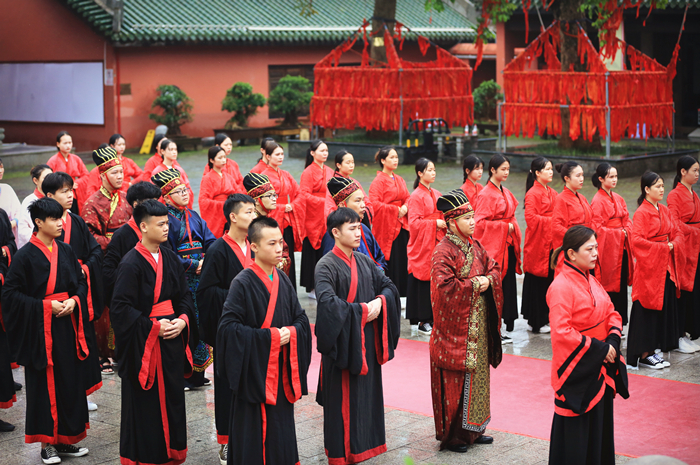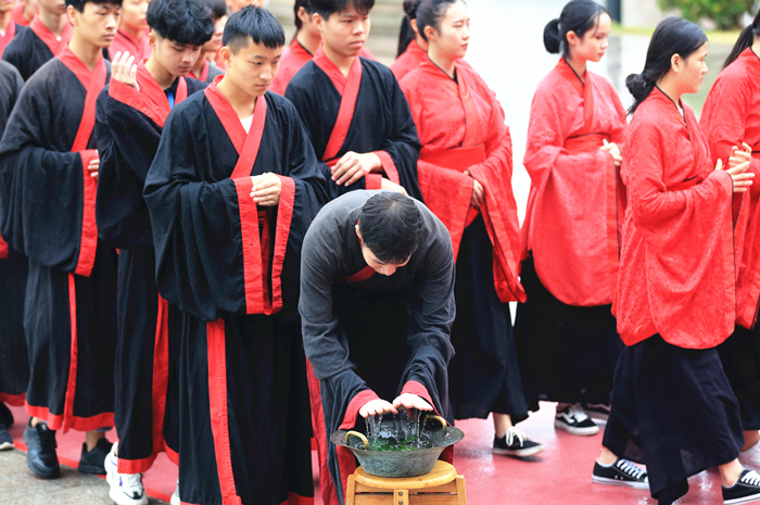 仪式上,师生们在司仪的带领下三拜先师孔子,学生们向老师行“拜师礼”,表达尊师重道之意。参加仪式的学生身着汉服诵读经典《大学》,表达对中华优秀传统文化的无限崇敬之情。学院院长助理谢毅松表示,中华优秀传统文化是中华民族的宝贵财富。他希望同学们通过学习学习传统文化,树立正确的人生观和价值观、养成良好的生活习惯、培养仁慈善良的心性,认真学好科学知识和本领,成为社会需要、国家期望的合格人才。