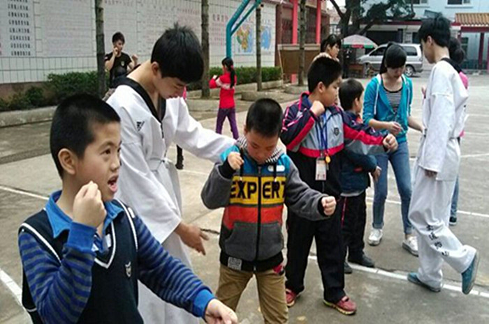 为了响应我校2014年“学雷锋树新风,争先创优”活动的号召,积极推进我校关爱农民工子女活动,提高我校学生社团的组织能力,本学期我校跆拳道协会到星星学校组织学生开办了农民工子女跆拳道兴趣班。